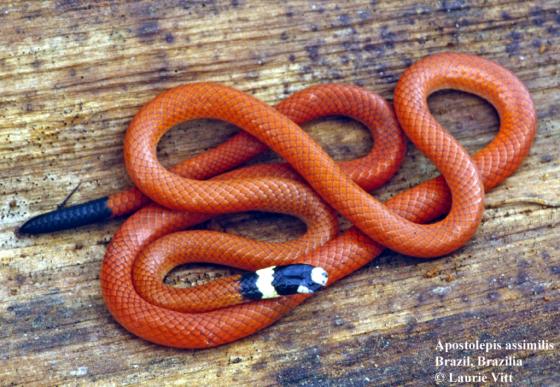 Serpente não peçonhenta com dentição opistóglifa e olhos com pupilas redondas.