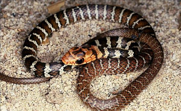Os jovens apresentam uma coloração com desenhos transversais no primeiro terço do corpo com bandas avermelhadas. Quando alcançam a idade adulta o colorido torna-se cinza claro e o ventre fica branco-amarelado.