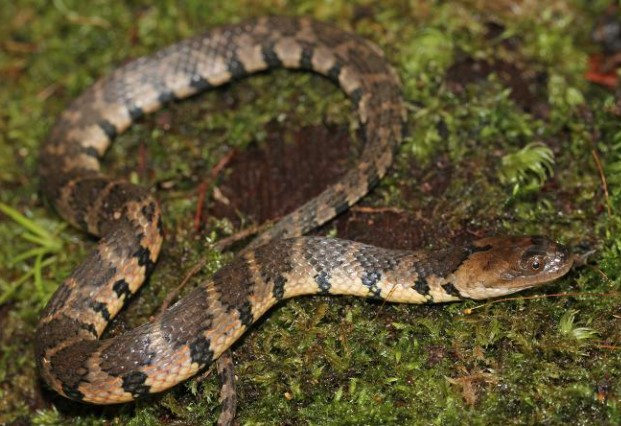 Possui colorido pardo com losangos em tons de laranja-avermelhado que se fundem com manchas ventrais escurecidas e uniformes.